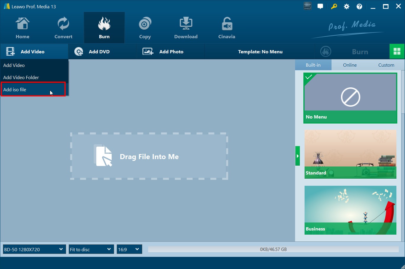 In case you want a physical backup of your file, then your best way to go is to burn your ISO files to Blu-ray easily. For this task, you can use Leawo Blu-ray Creator. This tool will make this process hassle-free. It offers support for multiple disc types. You will have options like BD50, BD25, DVD5, and DVD9. Furthermore, you will have access to over 40 customizable menu templates