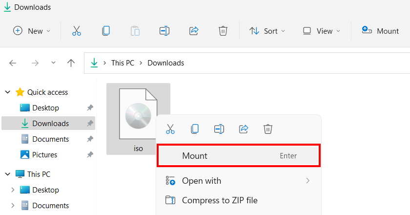 1. Mount ISO on Windows 10/11