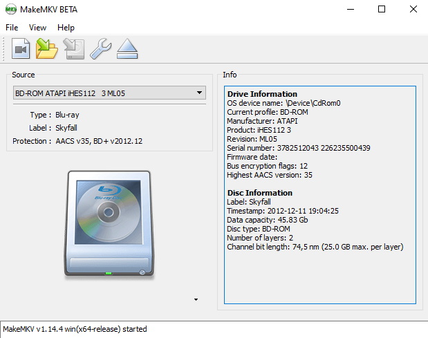 Step 3: Next, go ahead and open MakeMKV. Once opened, find the Blu-ray drive icon. You will find this icon on the main screen. When you click it, the software will scan the disc and display its titles and content.